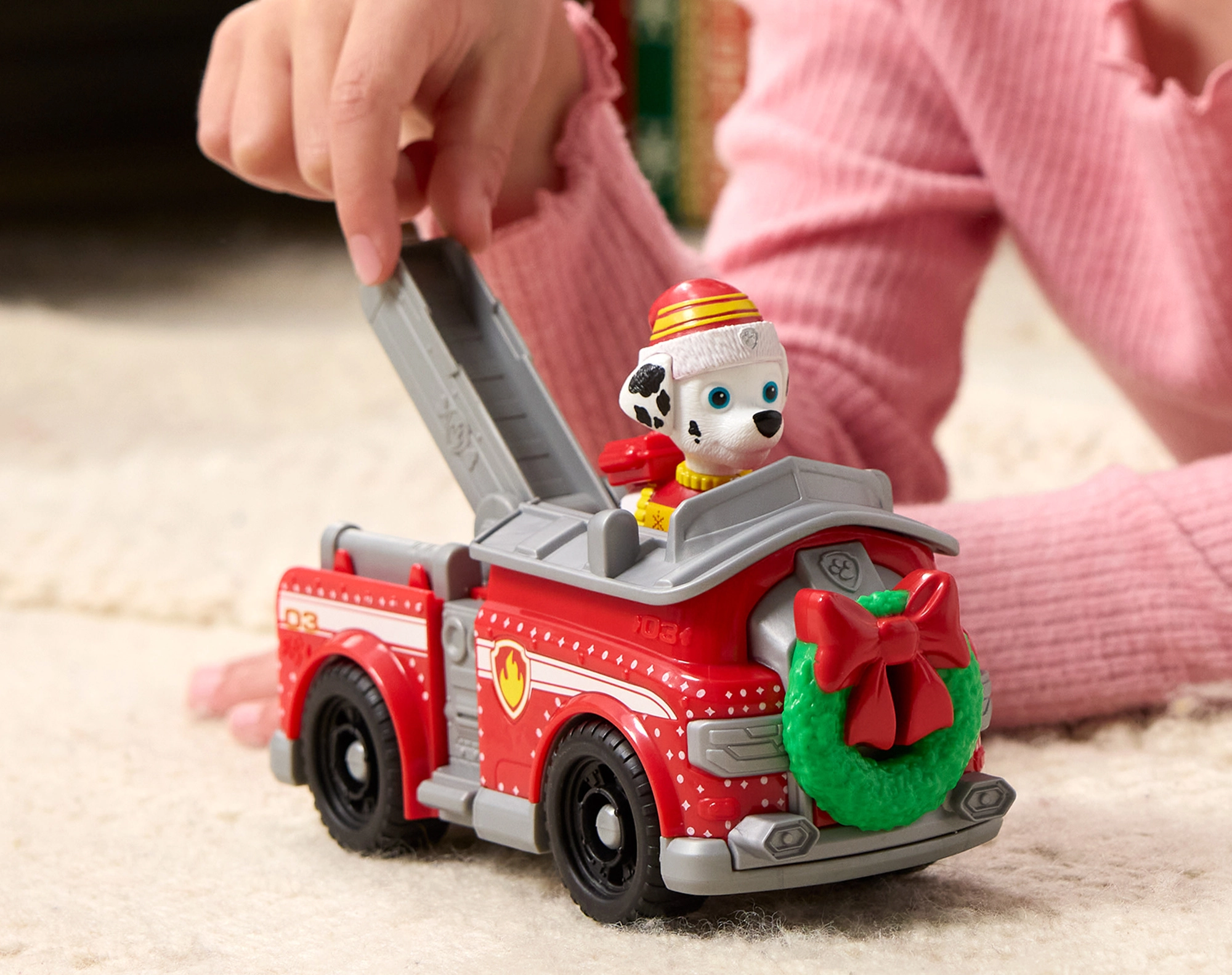 Tento oficiálny set od značky Spin Master prináša obľúbeného psíka Marshalla v zimnom oblečení a štýlové hasičské auto s vencom na prednej časti. Deti môžu figúrku usadiť do kabíny a vyraziť na dobrodružné misie. Vďaka rolovacím kolesám a výklopnému rebríku je hranie plynulé a plné akcie.