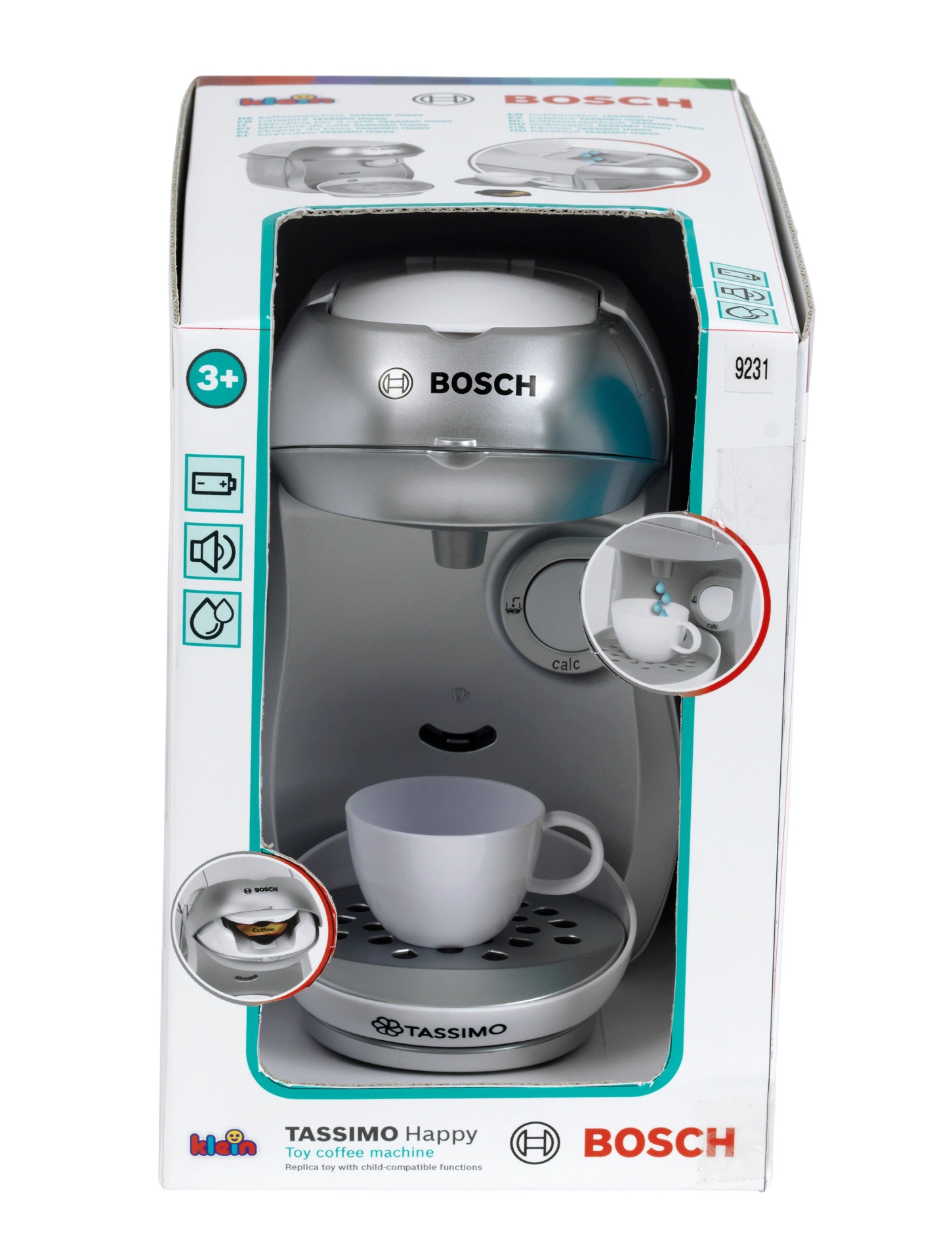 Realistický detský kávovar TASSIMO BOSCH od značky Klein poteší malých baristov autentickými funkciami. Má otváracie horné veko na kapsuly, odkvapkávač, skutočný prietok vody a zvukové efekty napodobňujúce reálnu prevádzku. Súčasťou je šálka, tanierik, lyžička a kapsuly pre bezpečnú a kreatívnu hru.