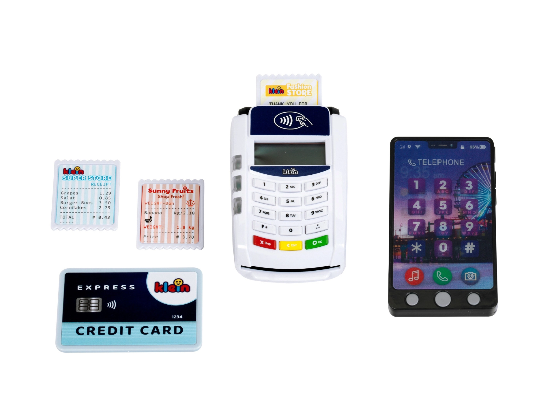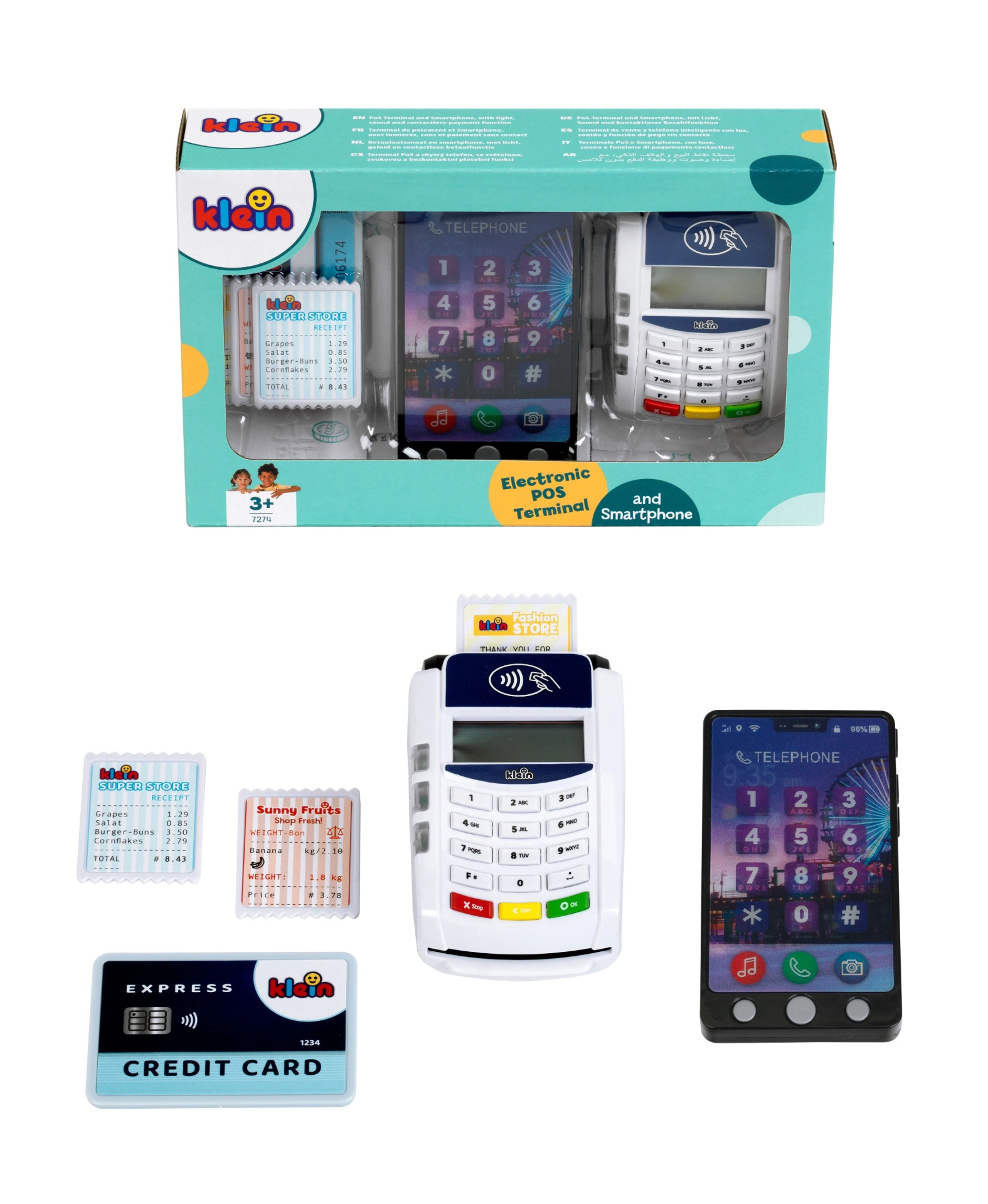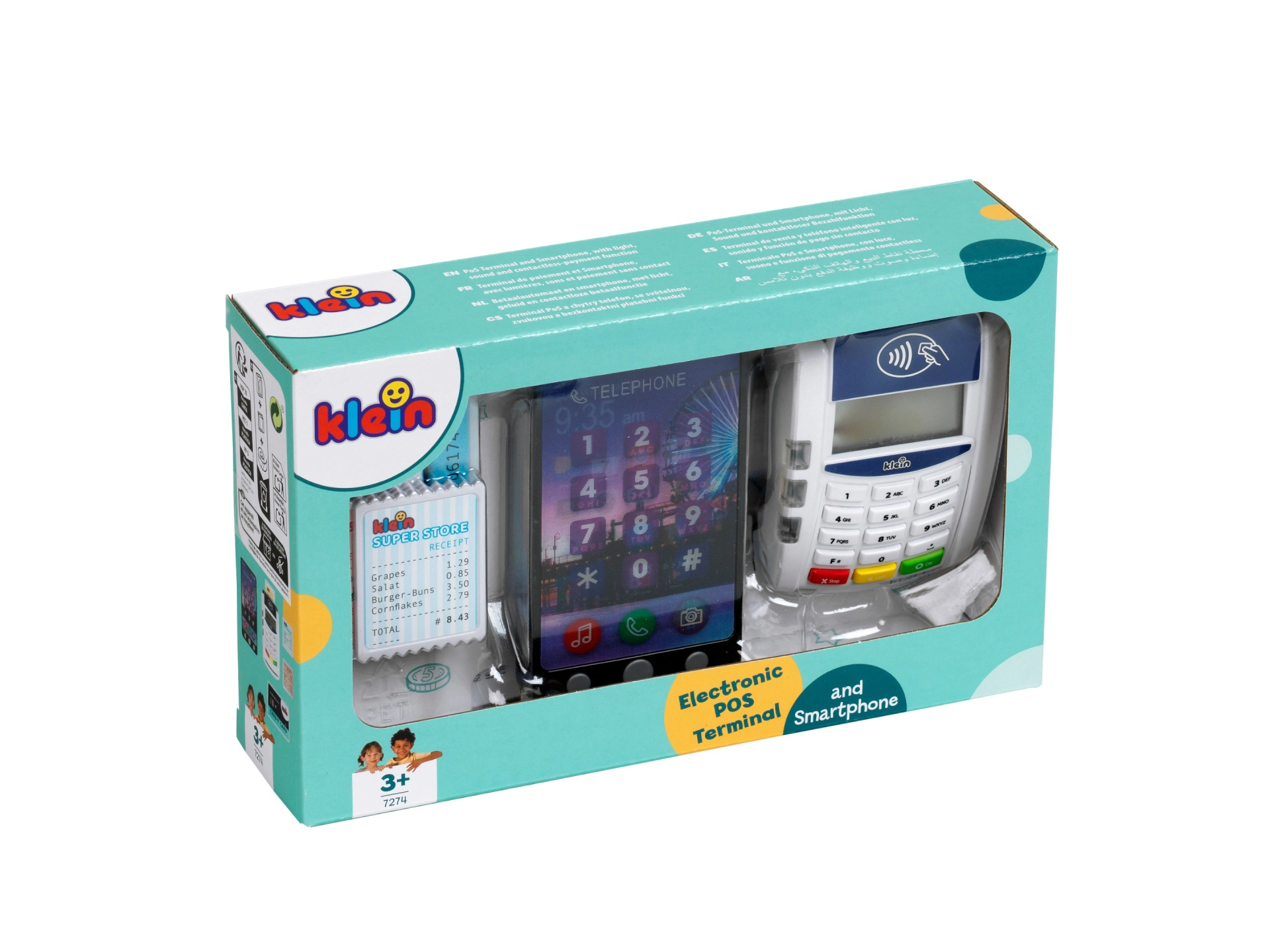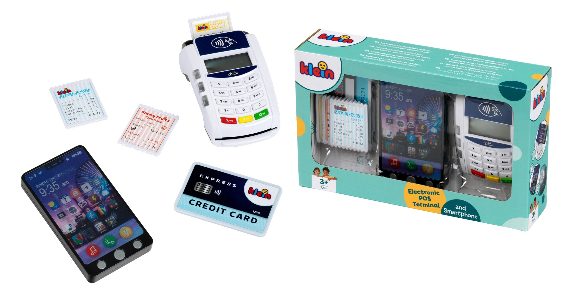 Interaktívny detský platobný terminál POS od značky KLEIN prináša realistickú hru na obchod. Ponúka bezkontaktné platenie pomocou karty aj telefónu, zaujme svetelnými a zvukovými efektmi a pomáha deťom pochopiť princípy nákupu a hodnotu peňazí. Súčasťou je smartfón s holografickým displejom a tlačidlami so zvukmi.
