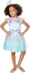 Kúzelný kostým pre malých milovníkov mačacích dobrodružstiev prináša sladký pastelový vzhľad s cupcake motívom. Viacvrstvová tylová sukňa v modro‑fialovom ombré a jemné volánikové rukáviky vytvárajú nadýchaný efekt, zatiaľ čo pohodlný strih zaisťuje ľahké obliekanie a voľný pohyb.