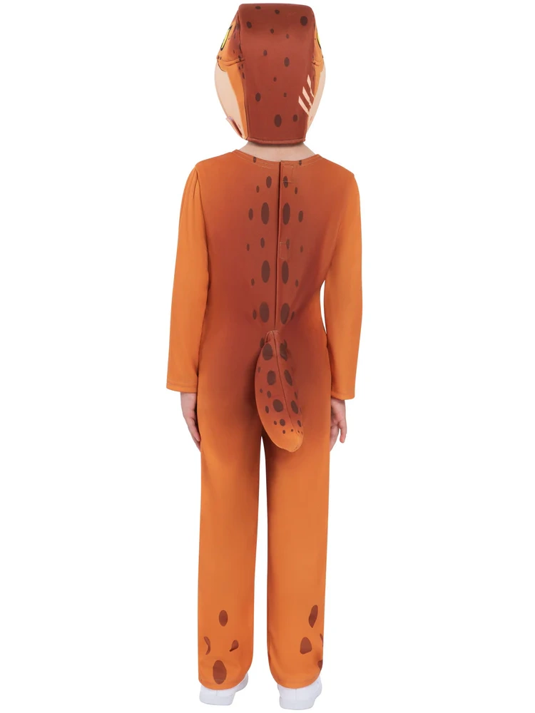 Roztomilý a pohodlný detský kostým JURASSIC WORLD T‑Rex pre malých milovníkov dinosaurov vo veku 3–4 roky. Jednodielny overal s kapucňou v tvare dinosaura, pripevneným chvostom a potlačou škvŕn zaistí ľahké obliekanie aj maximálne pohodlie na karneval, Halloween aj každodenné prezliekanie.