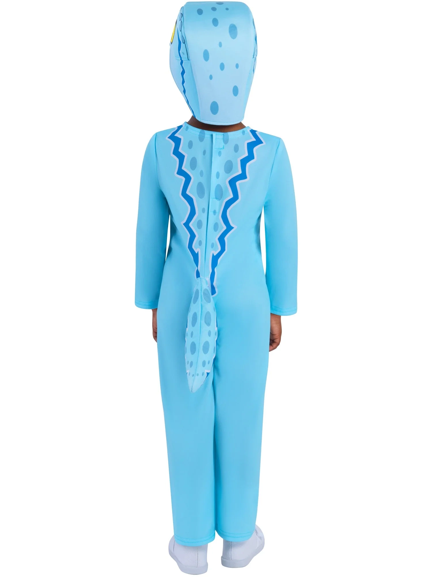 Kostým zaujme potlačou škvŕn, dekoratívnou pílovitou chrbtovou líniou a pohodlným strihom, ktorý neobmedzuje v pohybe. Skvelá voľba na detské oslavy, karnevaly, maškarný bál či každodenné dobrodružstvá.