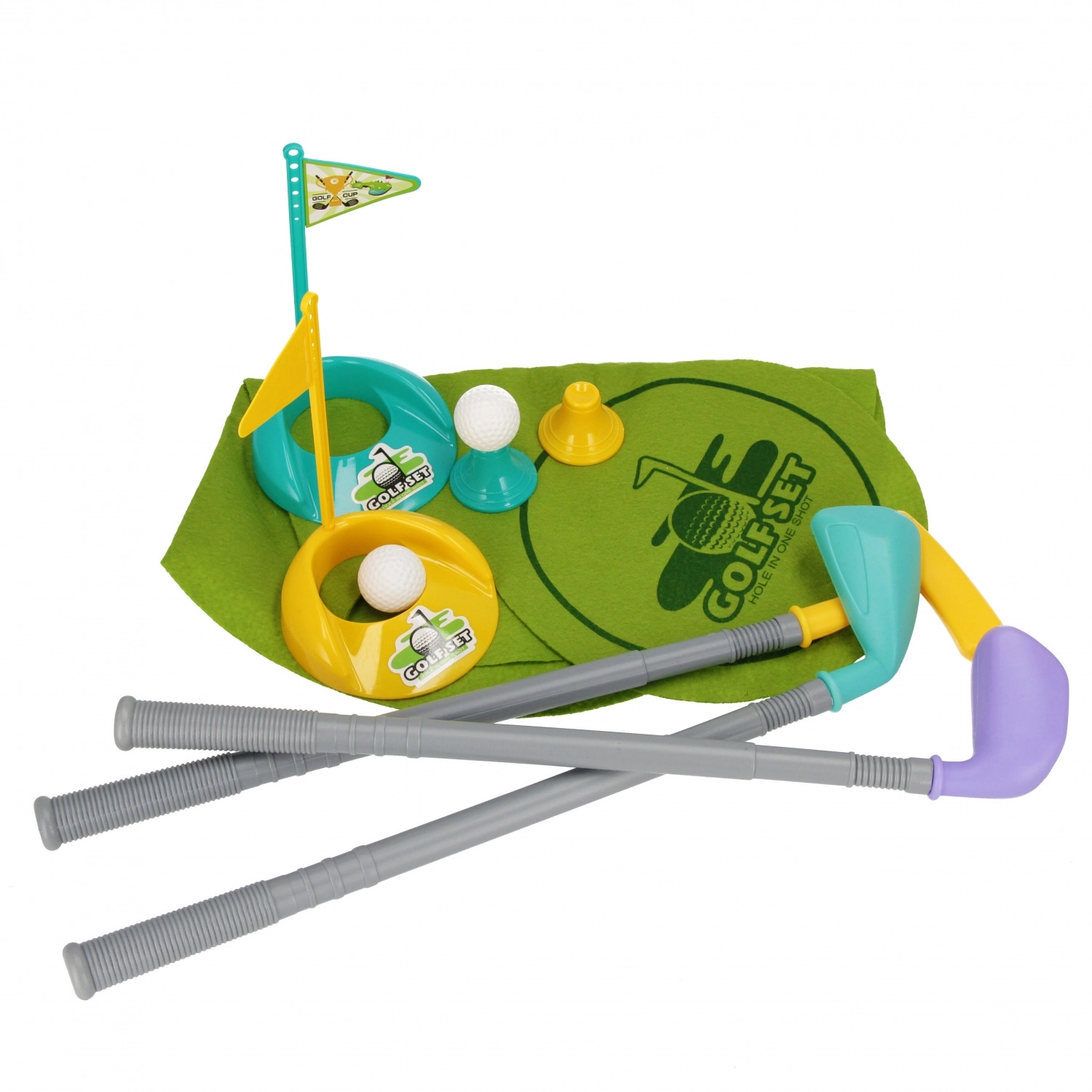 Zábavný detský golfový set na prvé krôčiky do sveta golfu. Obsahuje 3 ľahké palice, 2 loptičky, jamky s vlajočkami a golfovú podložku na tréning patovania doma aj vonku. Ideálny na rozvoj koordinácie a motoriky detí od 3 rokov.