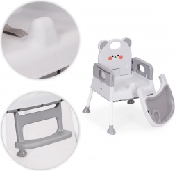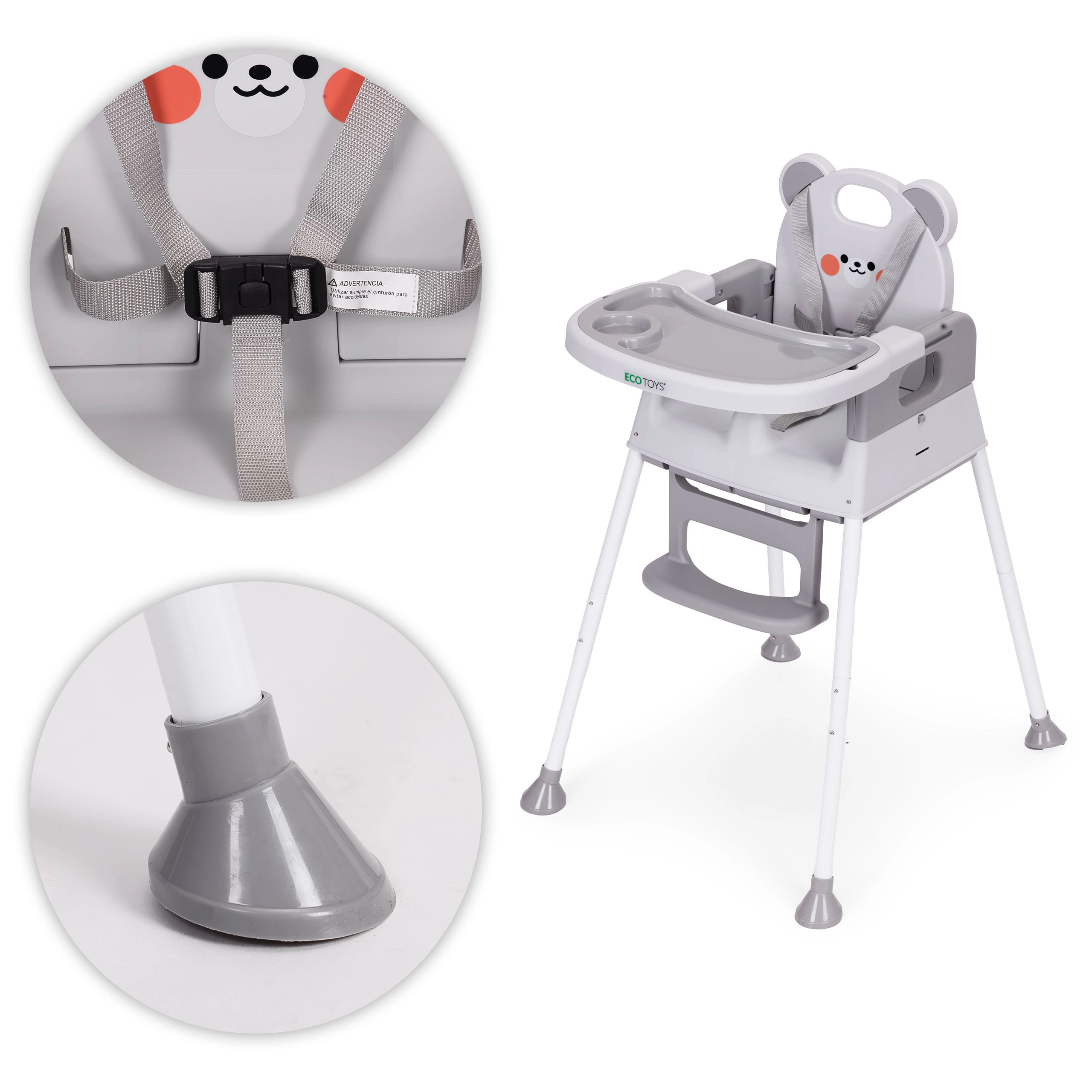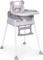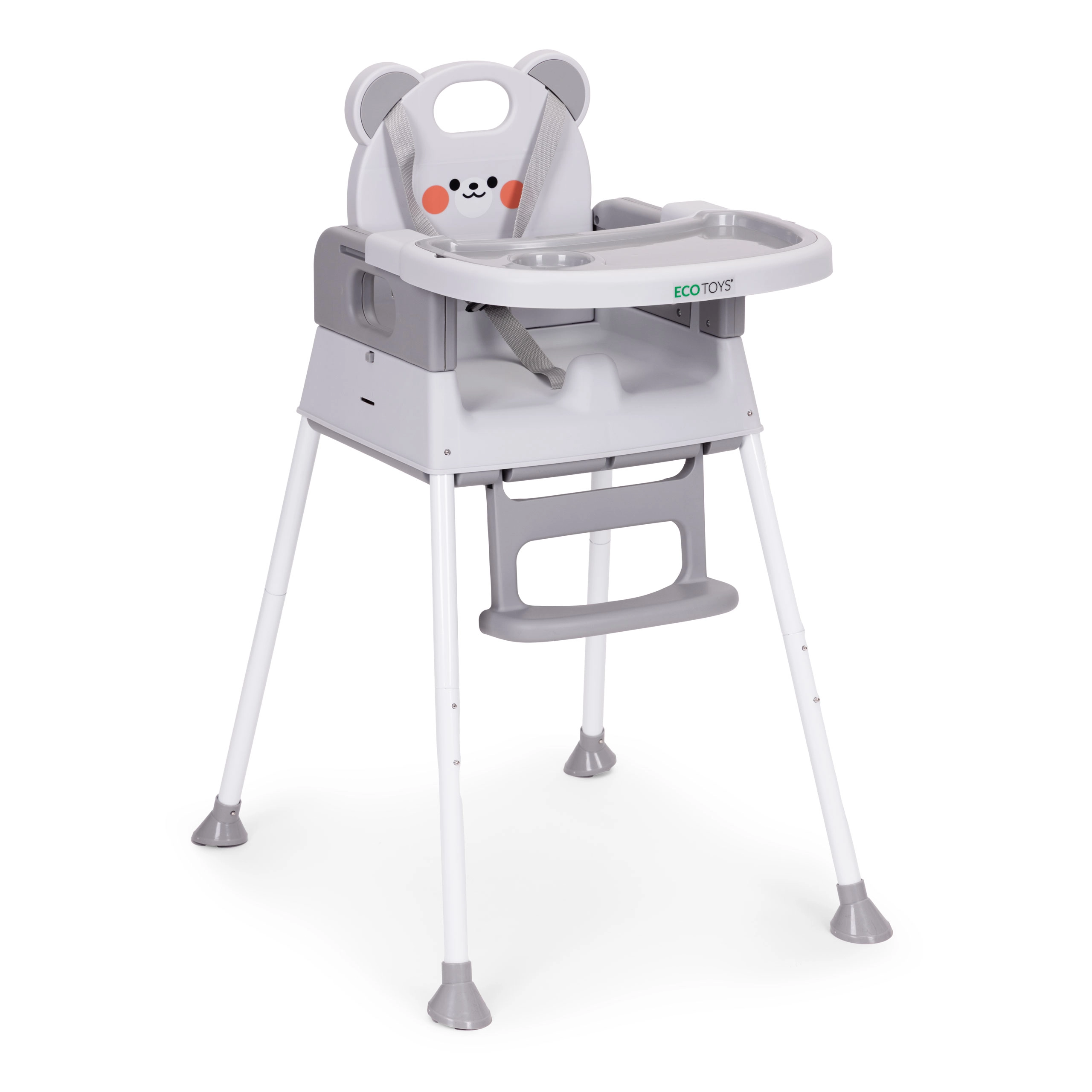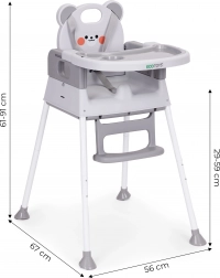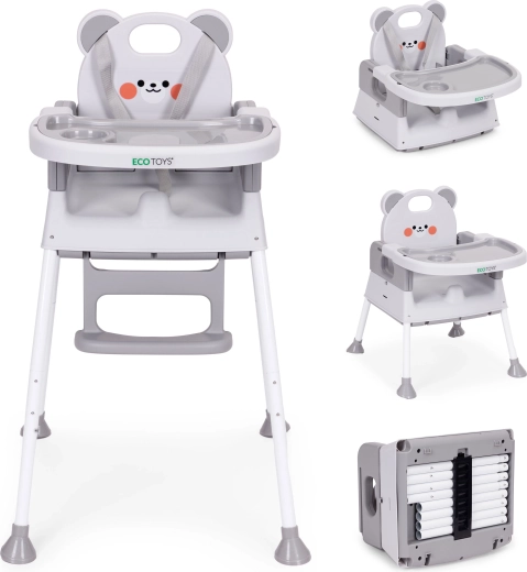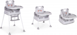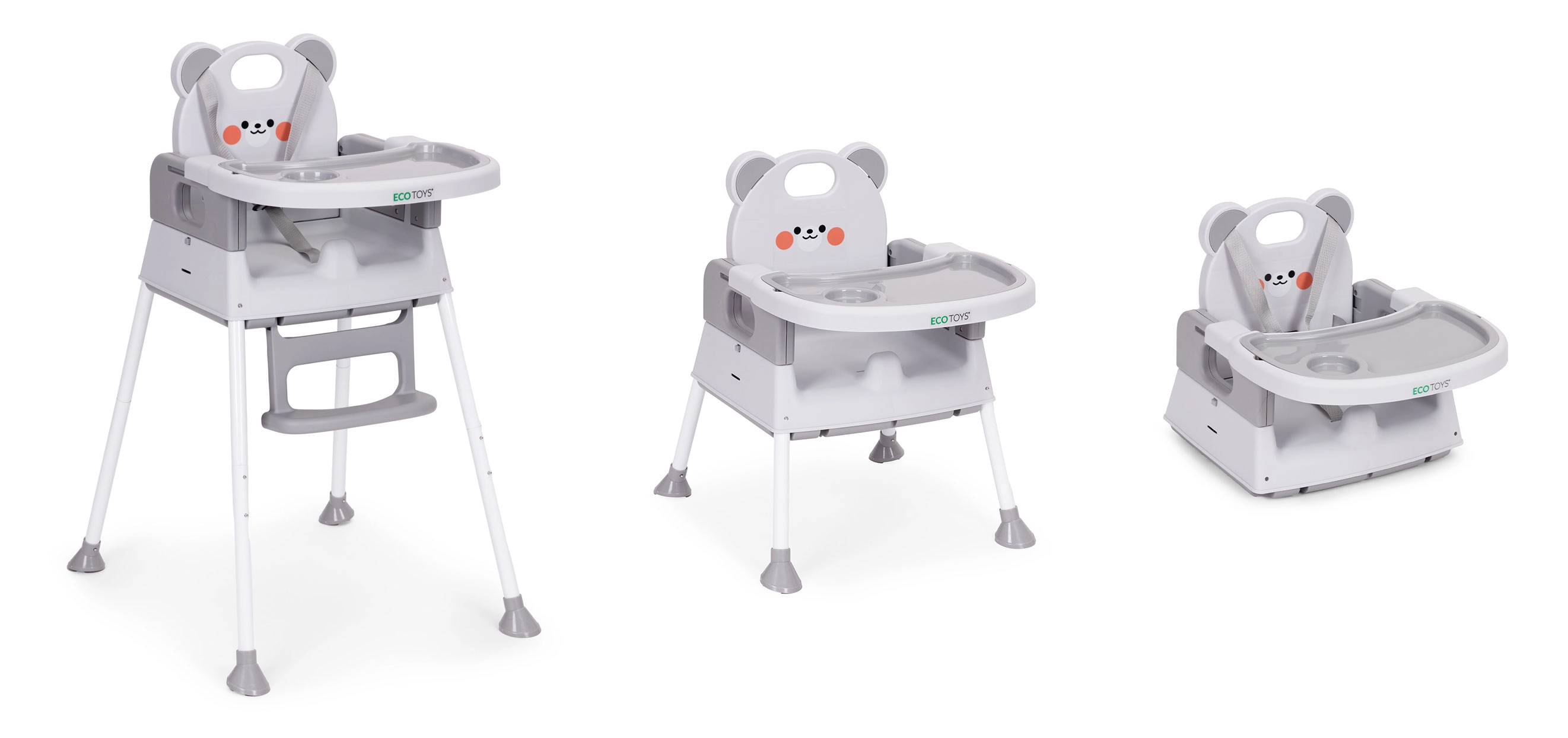 Táto viacúčelová jedálenská stolička 3 v 1 umožní deťom stolovať spolu s rodinou a zároveň šetrí miesto. Vďaka jednoduchej prestavbe ju využijete ako vysokú stoličku, nízke kresielko alebo nadstavec na jedálenskú stoličku – ideálne do kuchyne, malých priestorov aj na cesty.