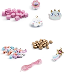 Objavte kúzlo tvorby šperkov s farebnou sadou Djeco Dúha. Deti si môžu podľa fantázie navliekať koráliky v dúhových farbách, pridávať prívesky s mačiatkami a vytvárať jedinečné doplnky, ktoré potešia pri každodennom nosení aj ako milý darček.