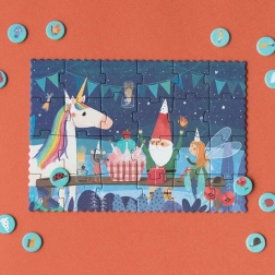 Objavte čarovný svet večernej oslavy narodenín jednorožca s vreckovým puzzle od značky LONDJI. Vďaka kompaktnému formátu sa zmestí do vrecka či batôžka a skvelo zabaví deti v kaviarni, vo vlaku aj na návšteve.
