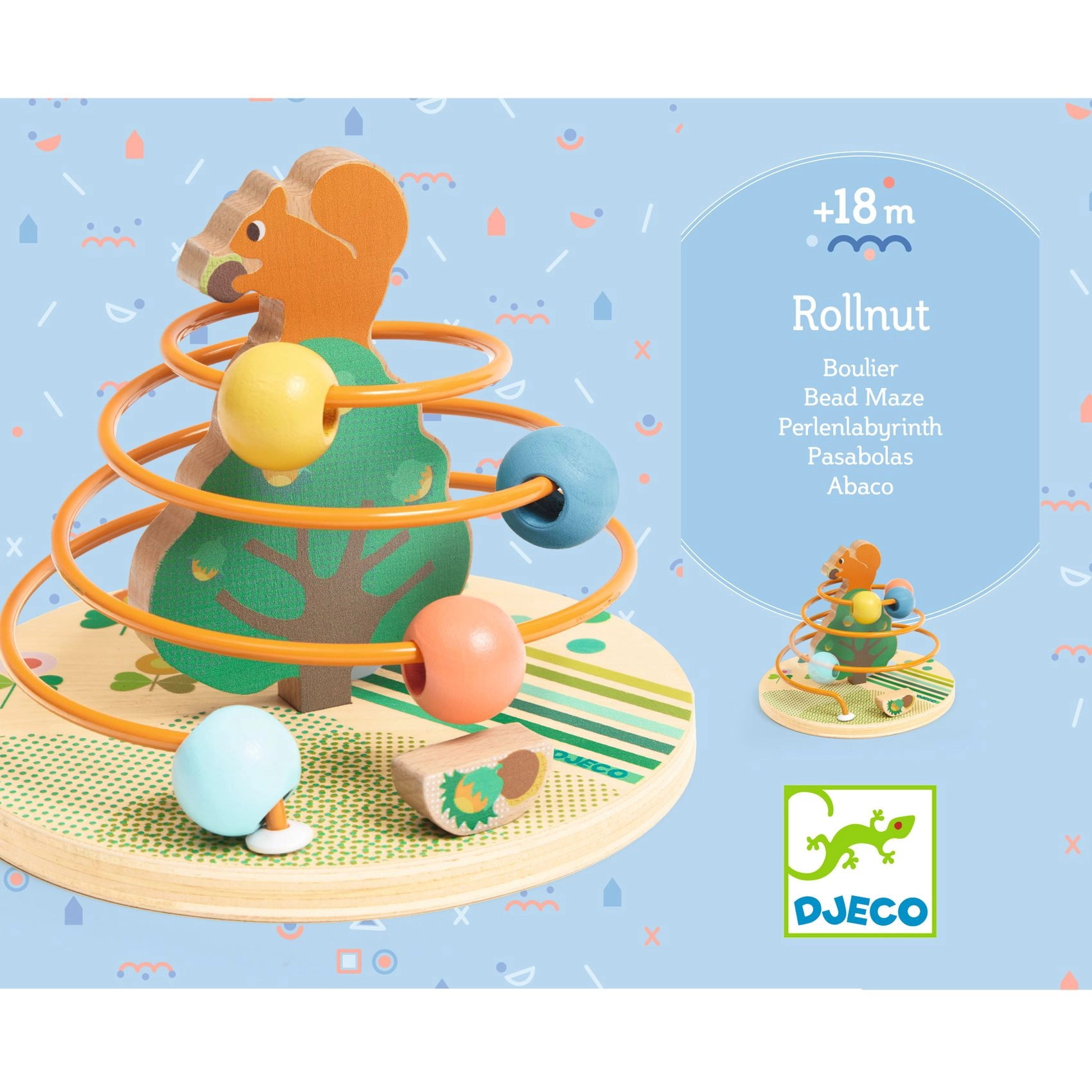 Objavte zábavnú drevenú prepletačku RollNut od DJECO, ideálnu pre deti od 18 mesiacov. Deti posúvajú a otáčajú farebné koráliky po tyči krúživými pohybmi a spájajú veveričku s lieskovými orieškami. Hračka podporuje jemnú motoriku, koordináciu oko–ruka a zmyslové vnímanie.