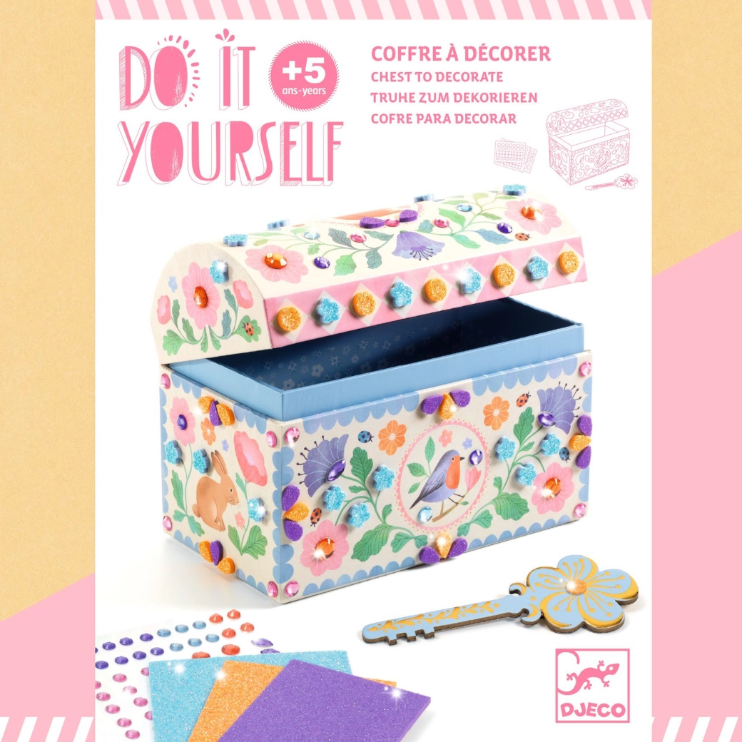 Vytvorte si vlastnú truhlicu s tajným dnom a ukryte svoje cennosti štýlovo! Táto kreatívna sada od značky Djeco podporuje jemnú motoriku, kreativitu a fantáziu detí. Jednoduchý postup, kvalitné materiály a krásny výsledok, na ktorý budú deti pyšné.