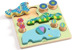 Roztomilé drevené vkladacie puzzle pre najmenších, ktoré sa po zložení skutočne „rozbehne“! Deti si užijú zábavu s motívom zvieratiek v autíčkach a zároveň rozvíjajú jemnú motoriku, logické myslenie a koordináciu oko–ruka. Kvalitné spracovanie značky Djeco a bezpečné materiály sú zárukou dlhej životnosti aj radosti z hry.