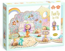 Puzzl’Up Tinyly od DJECO spája radosť zo skladania s fantáziou otvoreného hrania. Z jednotlivých kartónových dielikov zostavíte malebnú scenériu s mostíkmi, riečkou, hviezdami a zvieratkami. Vďaka voľne stojacim kartónovým dekoráciám a roztomilým postavičkám sa hotová scéna zmení na herný svet, ktorý deti znova a znova oživia vlastnými príbehmi.