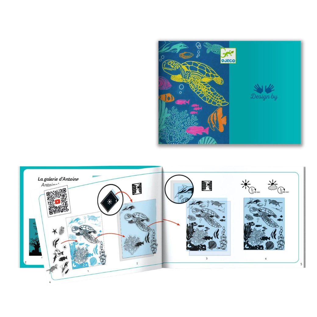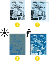 Objavte kúzlo modrej fotografie s kreatívnou sadou Djeco Podmorský svet! Deti si vďaka technike cyanotypie vytvoria vlastné originálne obrázky s motívmi morských tvorov. Sada podporuje kreativitu, jemnú motoriku a radosť z tvorenia.