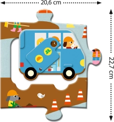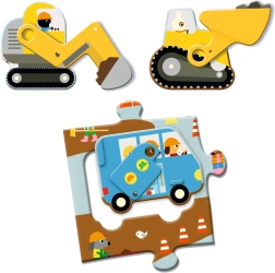 Táto sada podporuje rozvoj motoriky, koordinácie oko–ruka a logického myslenia. Kvalitné spracovanie a atraktívne ilustrácie motivujú k skúmaniu a opakovanému skladaniu. Skvelá voľba ako prvé väčšie puzzle pre milovníkov stavebných strojov.