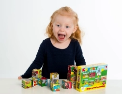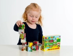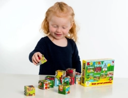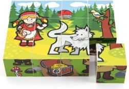 Dvanásť kociek umožní deťom poskladať šesť rôznych scén – napríklad Červenú čiapočku či Janka a Marienku. Zábava, ktorá sa len tak neomrzí.