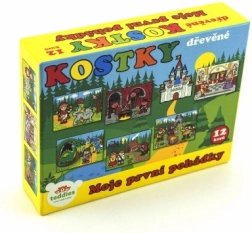 Táto sada 12 drevených obrázkových kociek v pevnej papierovej krabičke prináša deťom radosť zo skladania aj voľného stavania. Z kociek poskladáte 6 pôvabných rozprávkových scén – od Červenej čiapočky až po Janka a Marienku – a zároveň z nich postavíte komíny, hrady či ohrádky pre zvieratká.