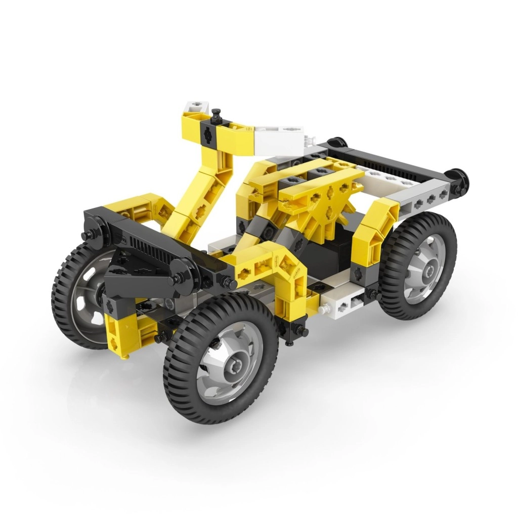Táto univerzálna stavebnica prináša deťom zábavu aj vzdelávanie v jednom. Z jedného setu dielikov postavíte autá, vrtuľníky, žeriavy, stroje aj mechanické mechanizmy. Integrovaný motor na 2× AAA batérie (nie sú súčasťou) dodá modelom pohyb a učí deti základom mechaniky.