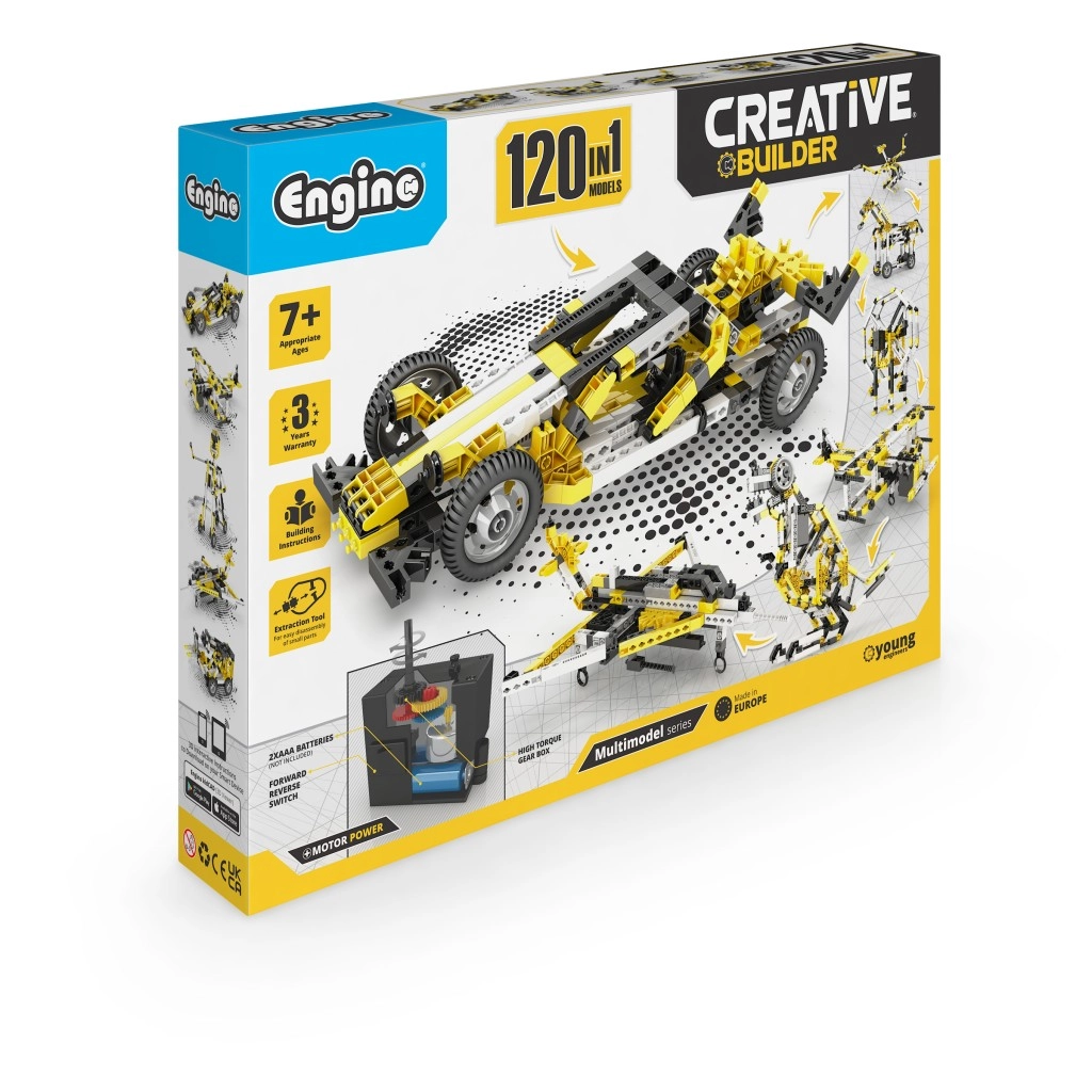 Objavte neobmedzené možnosti s kreatívnou stavebnicou Engino Creative Builder, ktorá umožňuje zostaviť až 120 modelov v 1. Vďaka motorčeku s prepínačom smeru, 3D návodom v aplikácii kidCAD a kompatibilite s ďalšími setmi ENGINO rozvíja logické myslenie, kreativitu a technické zručnosti detí od 7 rokov.