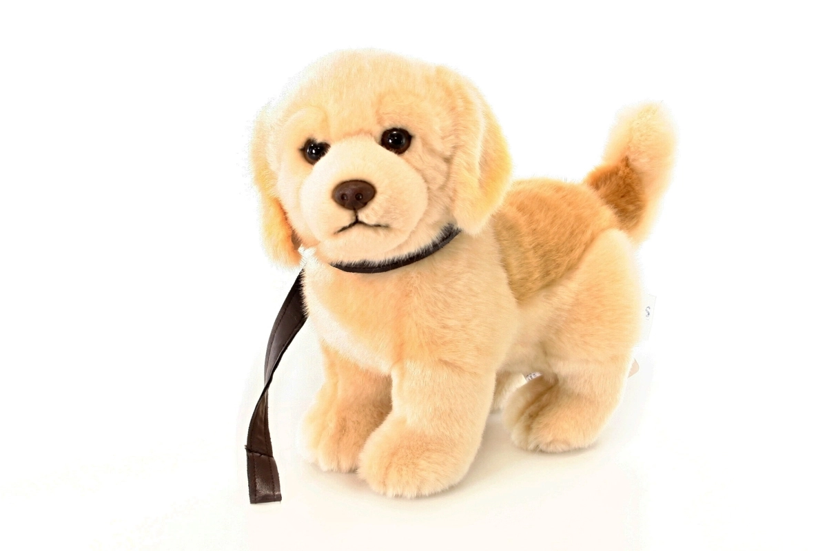 Roztomilé plyšové šteniatko zlatého retrievera s vôdzkou poteší malých aj veľkých milovníkov psíkov. Hračka je mäkučká, kvalitne spracovaná a sama stojí, takže vynikne ako dekorácia aj parťák na hranie. Vhodné pre deti od 0+.