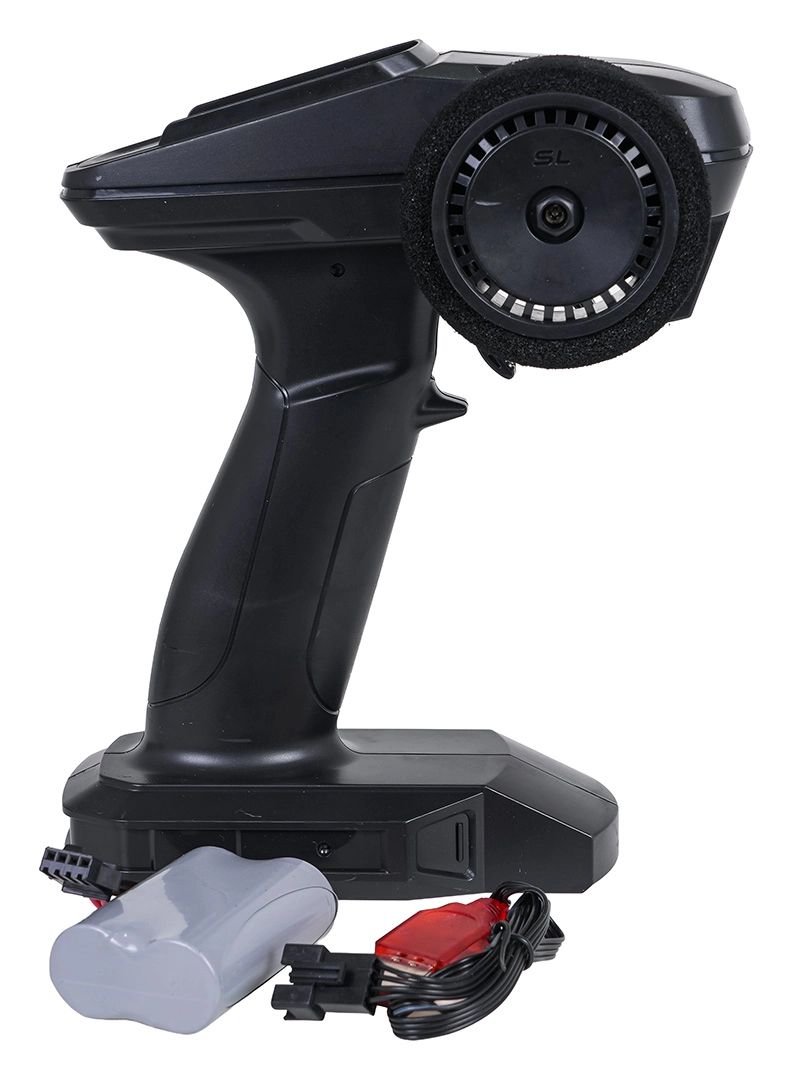 Pistolový ovládač na frekvencii 2,4 GHz ponúka plynulé riadenie bez rušenia, možnosť jazdy viacerých modelov naraz a jemnú reguláciu smeru.