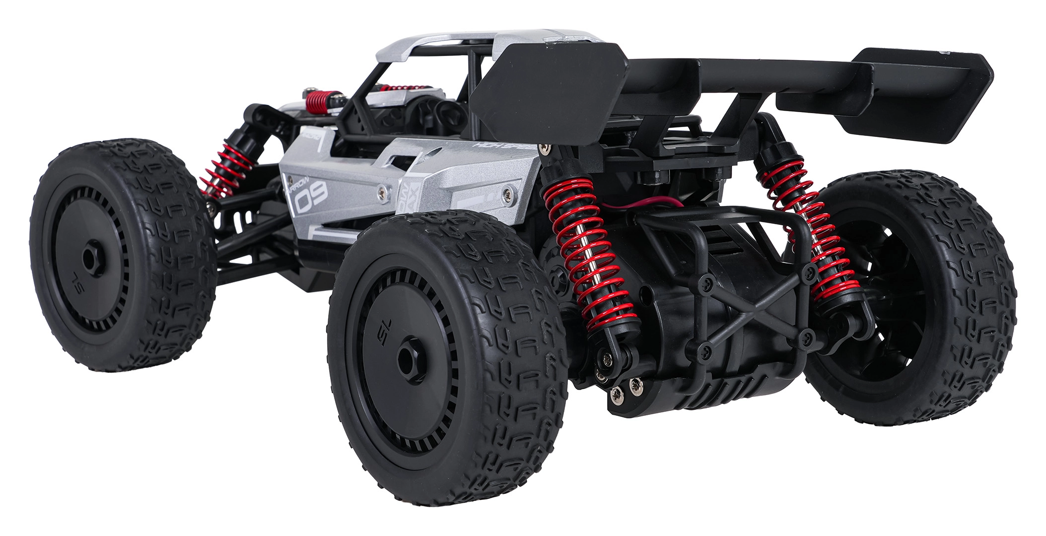 Vďaka frekvencii 2,4 GHz nedochádza k rušeniu, takže môžete jazdiť súčasne s ďalšími modelmi. Variabilné riadenie a veľké gumové pneumatiky umožňujú presné manévre a istotu v zákrutách. V balení nájdete nabíjací akumulátor 7,4 V a USB kábel na pohodlné nabíjanie.