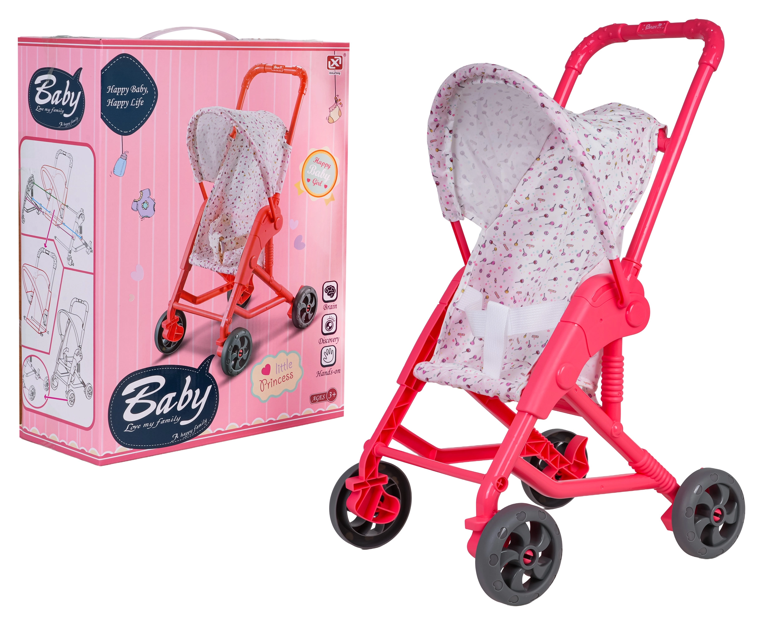 Roztomilý kočík pre bábiky poteší každé dieťa od 3 rokov. Má ľahký a stabilný rám, jednoduché ovládanie a bezpečné materiály vo veselých farbách. Ideálny na každodenné hranie aj ako skvelý darček.
