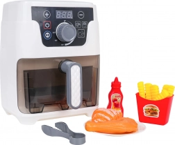 Interaktívny detský airfryer prináša realistickú kuchynskú zábavu pre deti od 3 rokov. Ponúka svetelné efekty, zvuky pečenia a vyprážania, otvárateľný kôš a jednoduché ovládanie časovača. Súčasťou sú bohaté doplnky na hranie sa na varenie: hranolky, kuracie kúsky, rožok, tanierik, klieštiky a kečup.