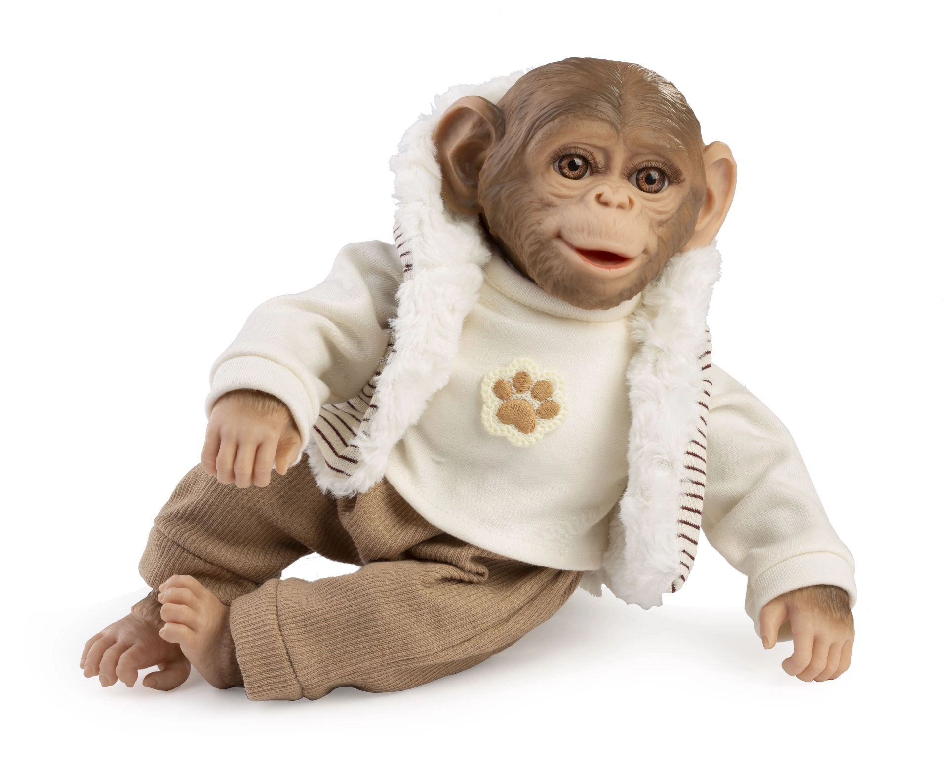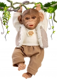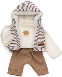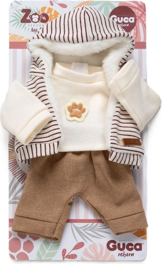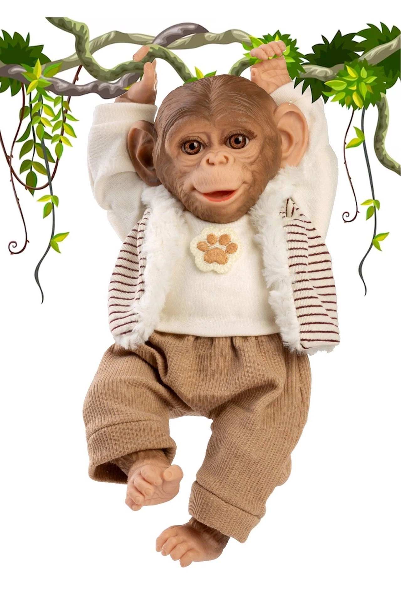 Táto štýlová sada pre opičku Reborn 32 cm zahŕňa tri zladené kúsky – krémové tričko s dlhým rukávom a motívom labky, pruhovanú vestičku s kapucňou a hrejivým kožúškom a pohodlné nohavice. Outfit je navrhnutý na ľahké obliekanie a vyzliekanie, aby deti mohli rýchlo meniť vzhľad svojej obľúbenej hračky.