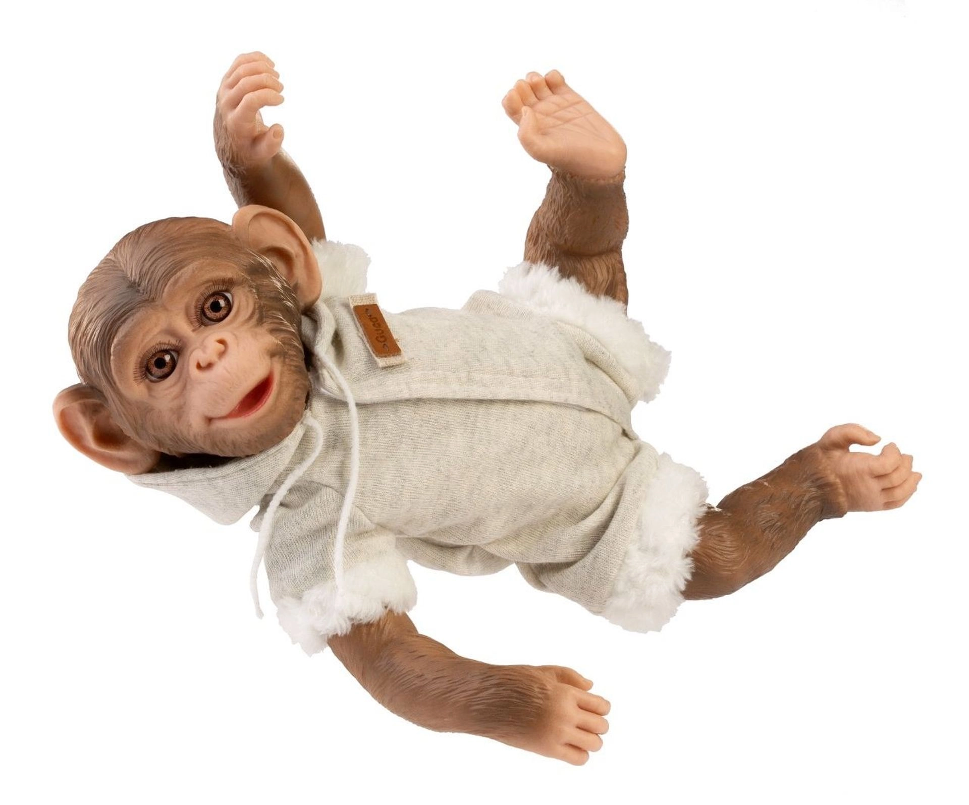 Štýlové oblečenie pre opičku bábätko REBORN vo veľkosti 32 cm vyniká príjemným spracovaním, kapucňou so šnúrkou a hebkými plyšovými lemami na rukávoch aj nohaviciach. Vďaka premyslenému strihu sa ľahko oblieka a dodá vašej zbierke realistický a rozkošný vzhľad.