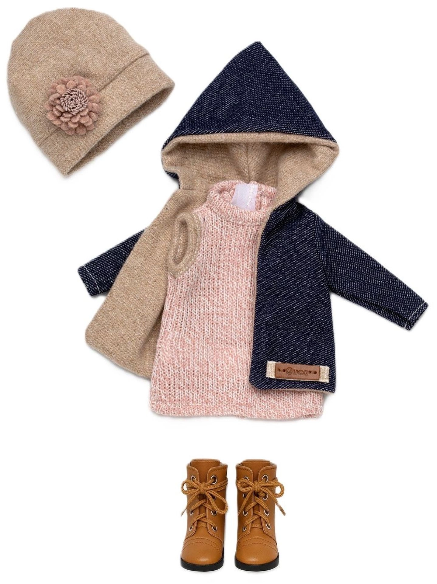 Kabátik s kapucňou a pletené detaily udržia bábiku v teple, zatiaľ čo topánky dodajú celku realistický nádych.