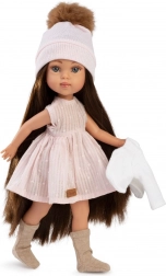 Doprajte svojej bábike štýlový outfit s touto sadou oblečenia pre PENELOPE vo veľkosti 34 cm. Set obsahuje 5 starostlivo zladených kúskov vyrobených ručne v Španielsku: jemné šaty, pletený kardigán na gombíky, čiapku s brmbolcom, mäkkučké ponožky a doplnky na jednoduché obliekanie. Ideálne pre kreatívnu hru a rozvoj jemnej motoriky, odporúčané od 3 rokov.