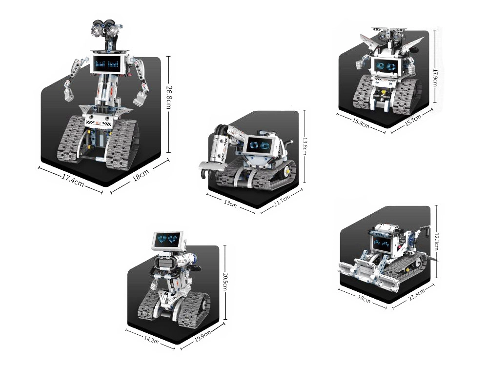 Táto moderná stavebnica prináša všetko, čo deti potrebujú na to, aby postavili a ovládali až päť rôznych robotických modelov z jednej sady dielov. Vďaka diaľkovému ovládaču, pohonu na pásoch a výraznému displeju „tváre“ si malí inžinieri užijú hodiny zábavy a učenia.