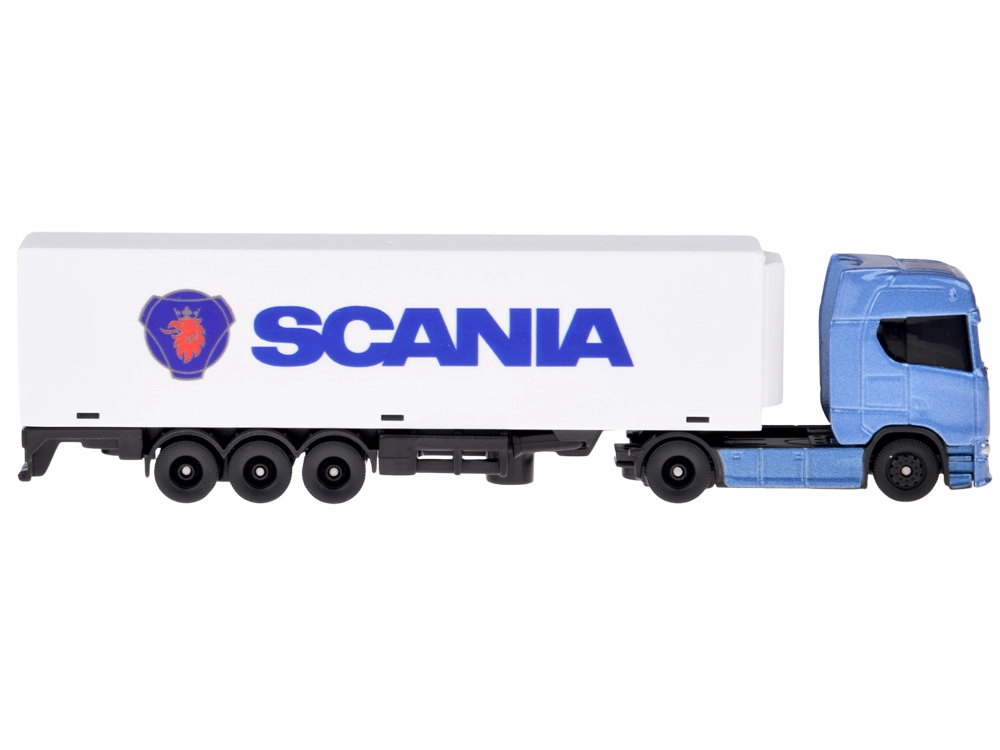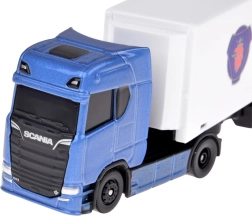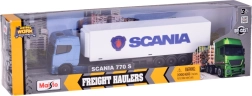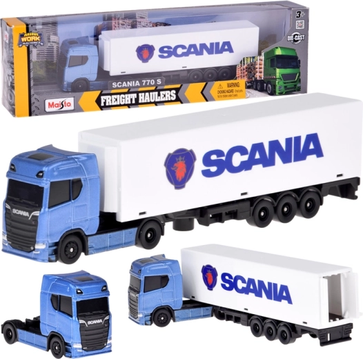 Realistická sada Maisto v mierke 1:64 prináša licencovaný ťahač SCANIA 770S s boxovým návesom na hraní aj zberateľstvo. Kovová kabína (die-cast), odpojiteľný náves, kvalitné spracovanie a detailná potlač SCANIA zaručujú skvelý zážitok aj dlhú životnosť.