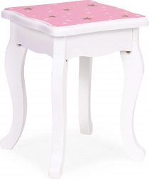 Vďaka kvalitnému drevu a MDF je stolík pevný a odolný. Podporuje jemnú motoriku, oko‑ruka koordináciu a samostatnosť pri každodennej hre na „salón krásy“ alebo „princeznú“. Decentná ružová s motívmi hviezdičiek a korunky zapadne do väčšiny interiérov.