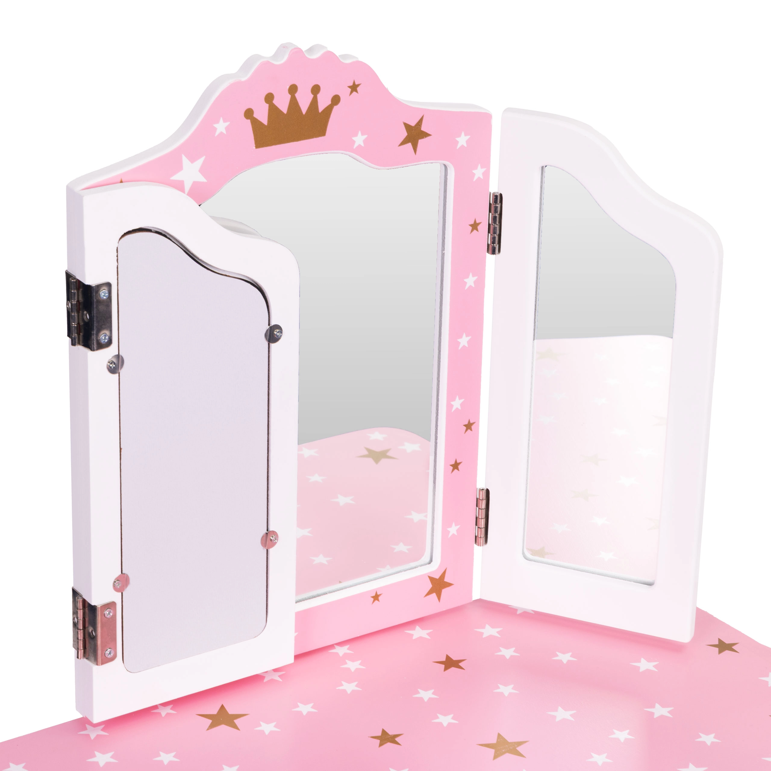 Veľké stredové zrkadlo a dve sklopné bočné krídla umožnia deťom vidieť sa z viacerých uhlov a zvyšujú realistickosť hry.