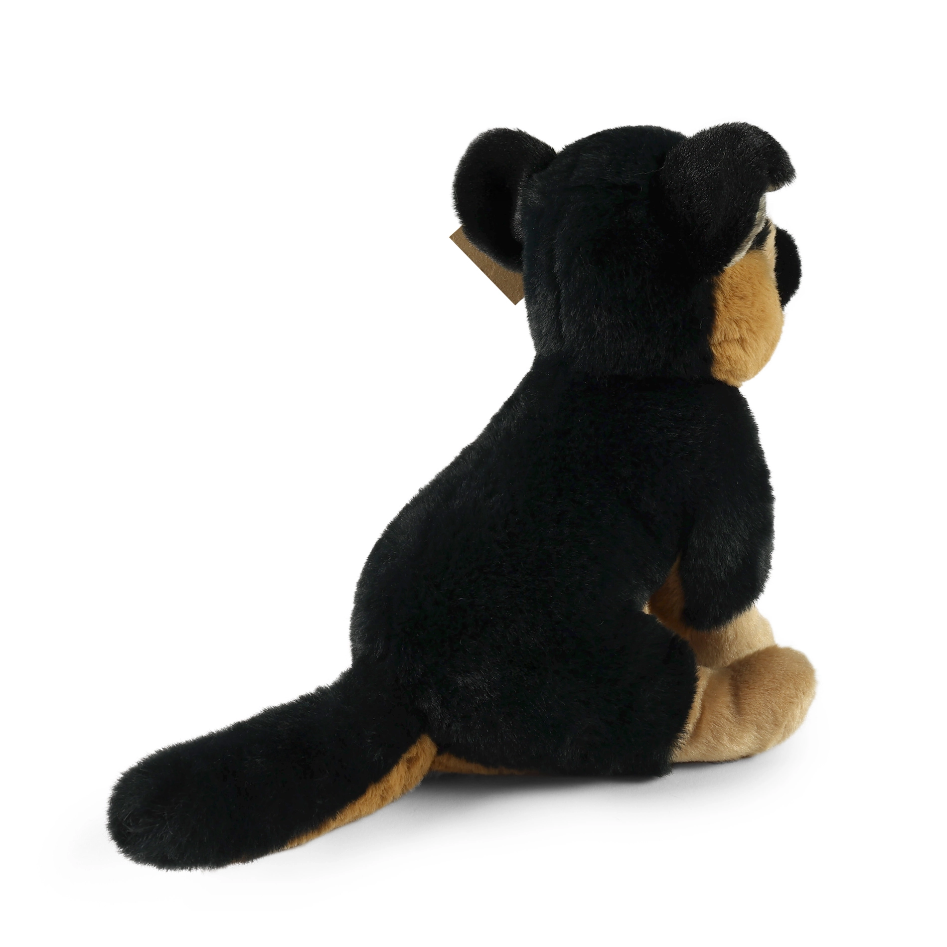 Roztomilý plyšový psík plemena nemecký ovčiak vo veľkosti 23 cm z kolekcie Soft poteší každého milovníka zvierat. Je ušitý z mimoriadne hebkého materiálu, s realistickými detailmi a eco-friendly výplňou z recyklovaných PET fliaš vhodnou aj pre najmenších.