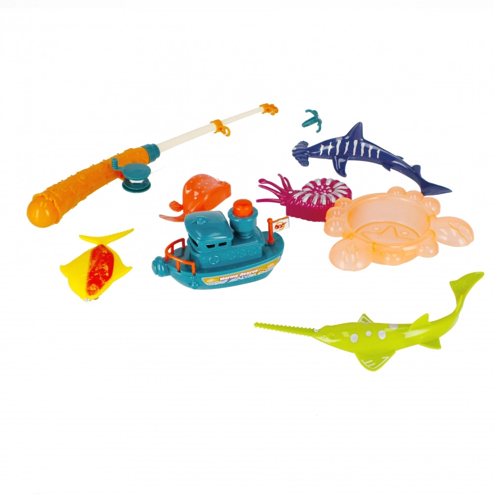 - Kompletná sada: rybársky prút + 7 morských živočíchov