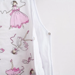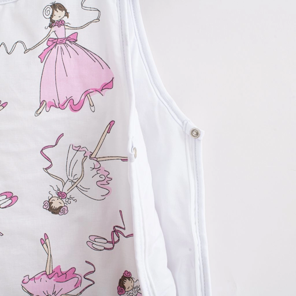 Spací vak New Baby Ballerina Bella kombinuje hebký bavlnený materiál s ľahkou výplňou pre optimálny tepelný komfort počas spánku. Roztomilý dizajn s baletkou poteší rodičov aj deti, zatiaľ čo praktické detaily oceníte každý deň.