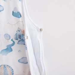 Detský spacý vak NEW BABY Romance s čarovnou potlačou vzdušného dobrodružstva je ideálnou voľbou pre pokojný spánok bábätka. Kombinácia mäkkej 100% bavlny a ľahkej polyesterovej výplne udržiava stabilný tepelný komfort a zároveň je šetrná k citlivej detskej pokožke.