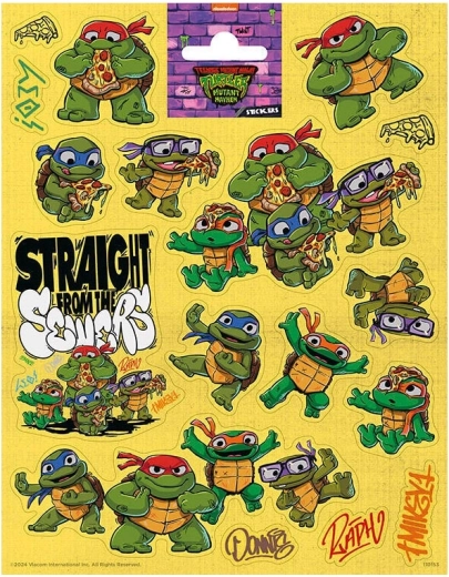 Tieto farebné a odolné samolepky s hrdinami ŽELVY NINJA potešia každého malého fanúšika. Väčší formát umožňuje jednoduché lepenie a výrazné zdobenie školských potrieb, hračiek alebo darčekových balíčkov.