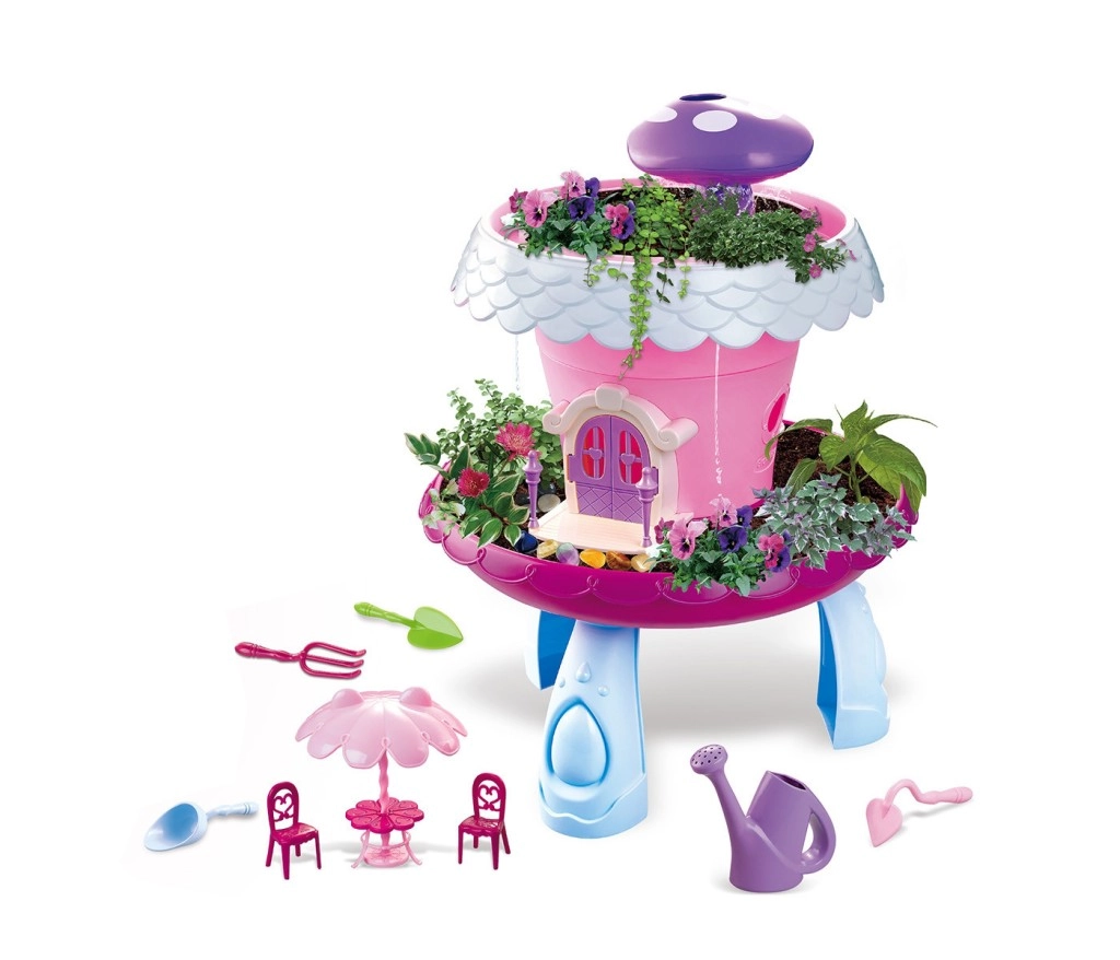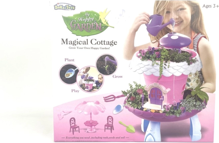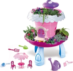 Domček so záhradkou – zasaď a staraj sa je čarovný herný set, ktorý deti hravou formou zoznamuje s prírodou. Ružový domček v tvare kvetu stojí na stabilných modrých nožičkách, jeho strecha s bielymi okrajmi ukrýva fialovú hubku na jednoduché zavlažovanie. V okolí je miesto pre kvetináče, aby malí záhradníci mohli sledovať, ako ich rastlinky rastú.