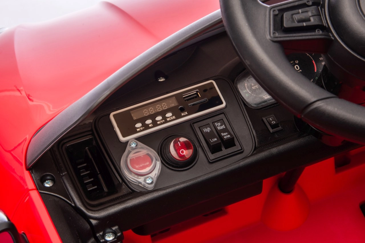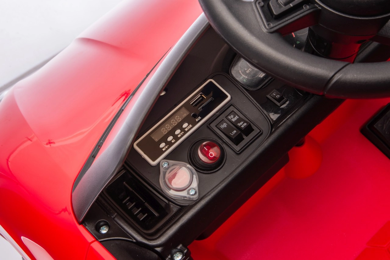 Audio panel poteší možnosťou prehrávania obľúbených skladieb – nechýba MP3, Bluetooth, FM rádio, predinštalované melódie a klaksón na volante. Komfort zabezpečuje sedadlo z čiernej eko kože s bezpečnostnými pásmi. Maximálna nosnosť je 30 kg, takže autíčko je ideálne pre menších vodičov.