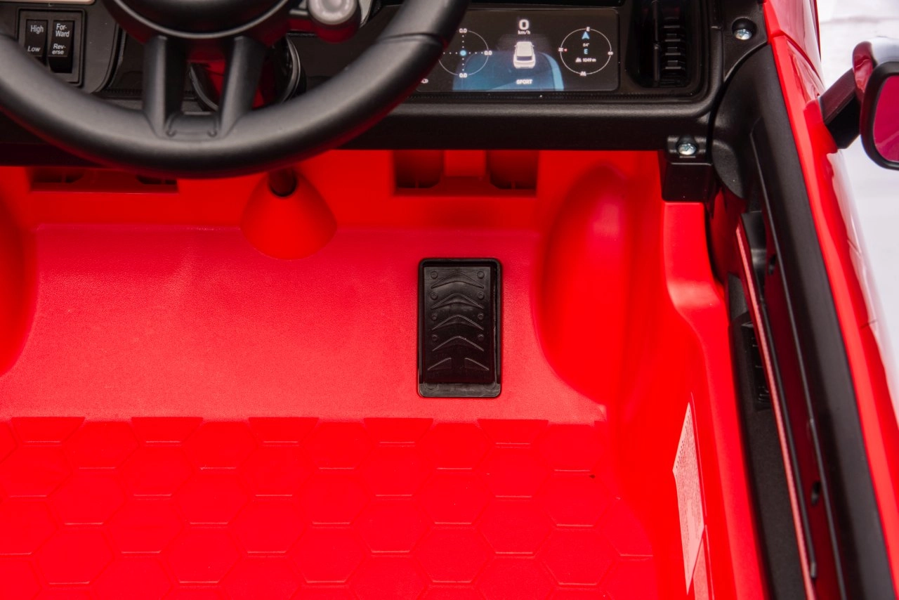 Veľké EVA kolesá a predné aj zadné odpruženie si poradia s nerovnosťami, zatiaľ čo predné LED svetlá a otváracie dvere podčiarknu realistický vzhľad. Diaľkový ovládač 2,4 GHz s 3 rýchlosťami a bezpečnostným tlačidlom Stop umožní rodičom mať všetko pod kontrolou.