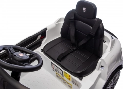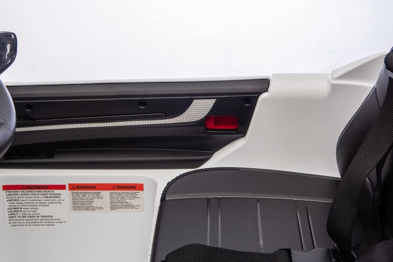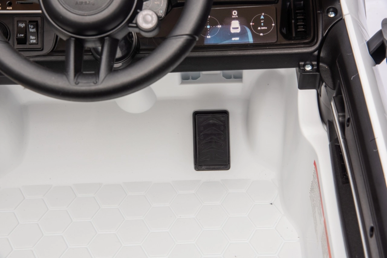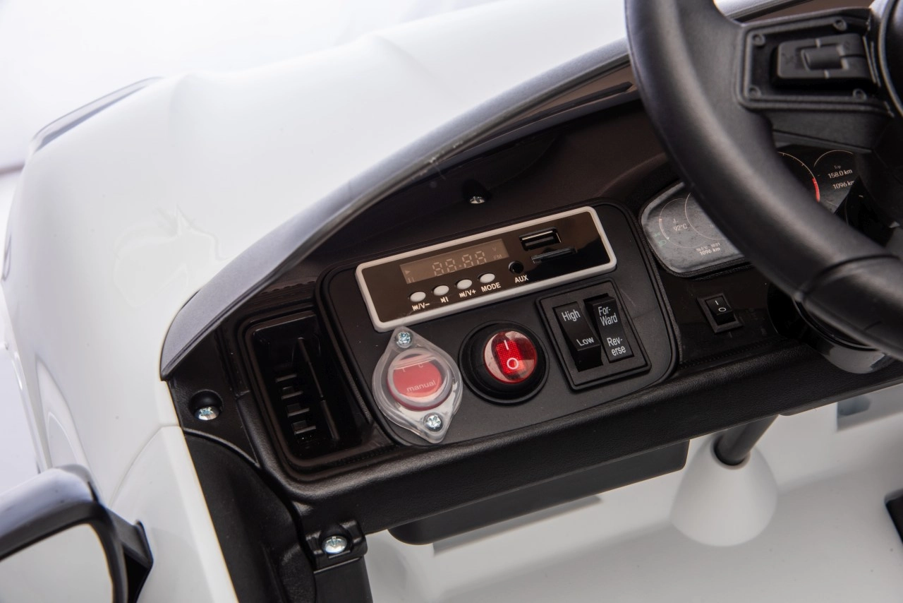 Pre maximálne bezpečie rodičov aj detí nechýba diaľkový ovládač 2,4 GHz s tromi rýchlosťami a núdzovým tlačidlom Stop. Interiér poteší čiernym sedadlom z ekokože s pásom, funkčným panelom s MP3/Bluetooth/FM a tlačidlami klaksónu a zvukov na volante. Otváracie dvere, LED svetlá a kvalitné spracovanie podporujú atraktívny vzhľad aj každodennú zábavu.