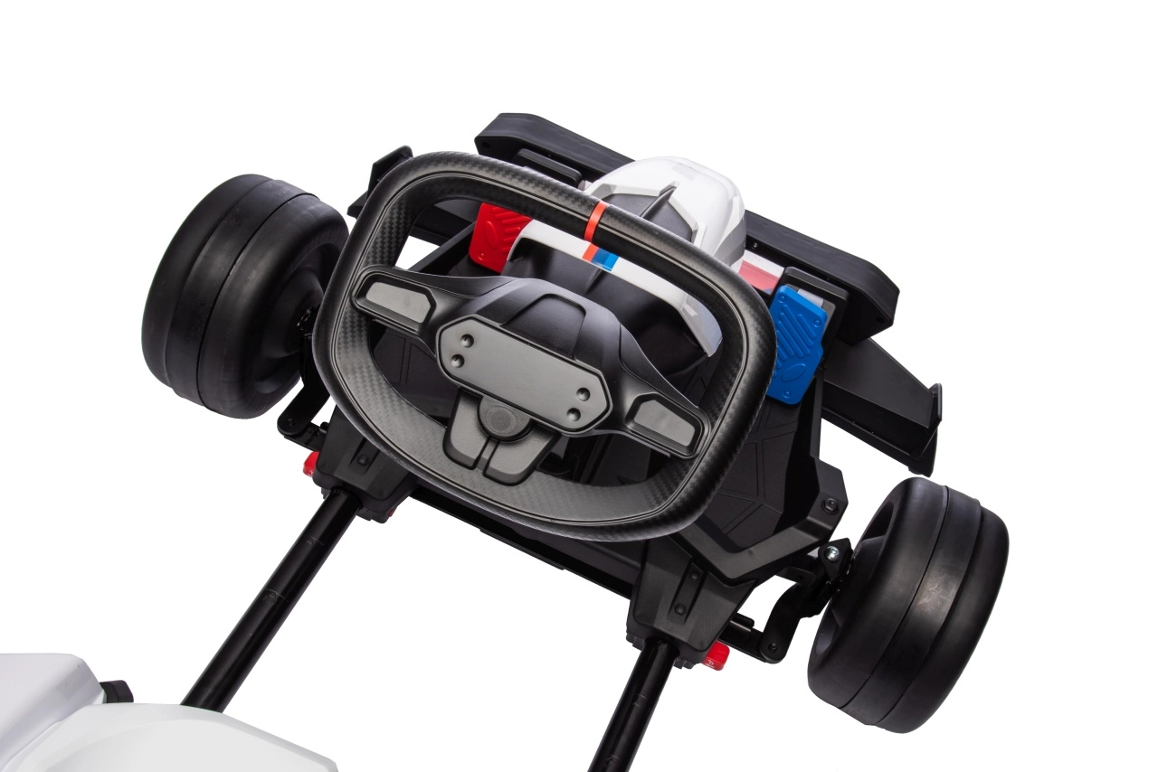 Elektrická motokára BMW pre deti vyniká autentickým pretekárskym štýlom a možnosťou driftovania vďaka špeciálnym kolesám. Dva motory 2×200 W v kombinácii s 24V batériou poskytujú svižnú akceleráciu a dlhú výdrž, zatiaľ čo plynulý štart zaistí komfortný rozjazd bez trhania. Ovládanie je intuitívne – vpred/vzad – ideálne pre začiatočníkov aj malých nadšencov rýchlej jazdy.