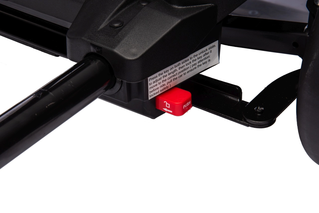 O bezpečí a štýl sa stará kompletné LED osvetlenie (predné/zadné) a podsvietené šasi, ktoré zvyšuje viditeľnosť. Tvarované športové sedadlo (cca 40×24×35 cm) poskytuje stabilný posed a istotu v zákrutách. Maximálna nosnosť je 60 kg, takže motokára porastie s vaším dieťaťom.