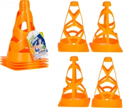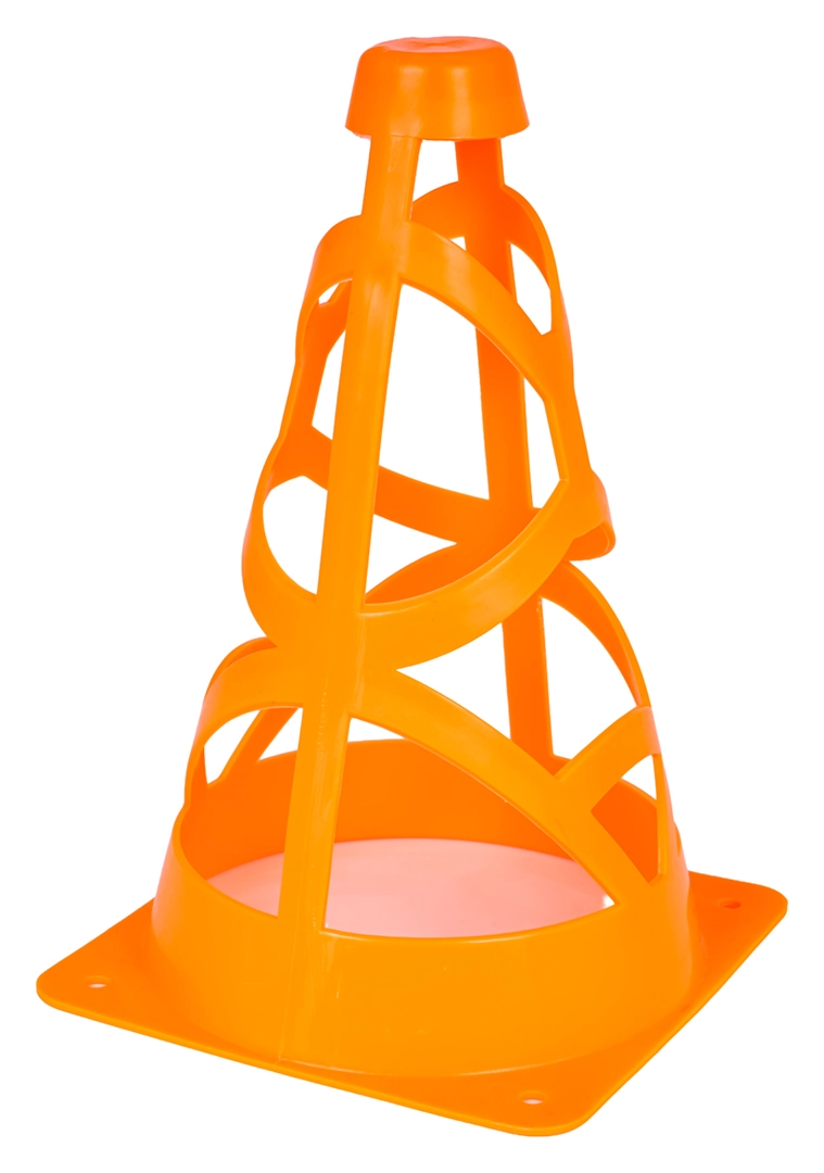 Univerzálne tréningové kužele v výraznej oranžovej farbe pomôžu vyznačiť dráhy, zóny a prekážky pri hrách a športe. Vďaka ľahkej plastovej konštrukcii sa ľahko prenášajú a ich stohovateľný tvar šetrí miesto pri skladovaní. Otvorená „mriežková“ štruktúra a otvory v rohoch základne umožnia kužele bezpečne ukotviť a znižujú odpor vetra.