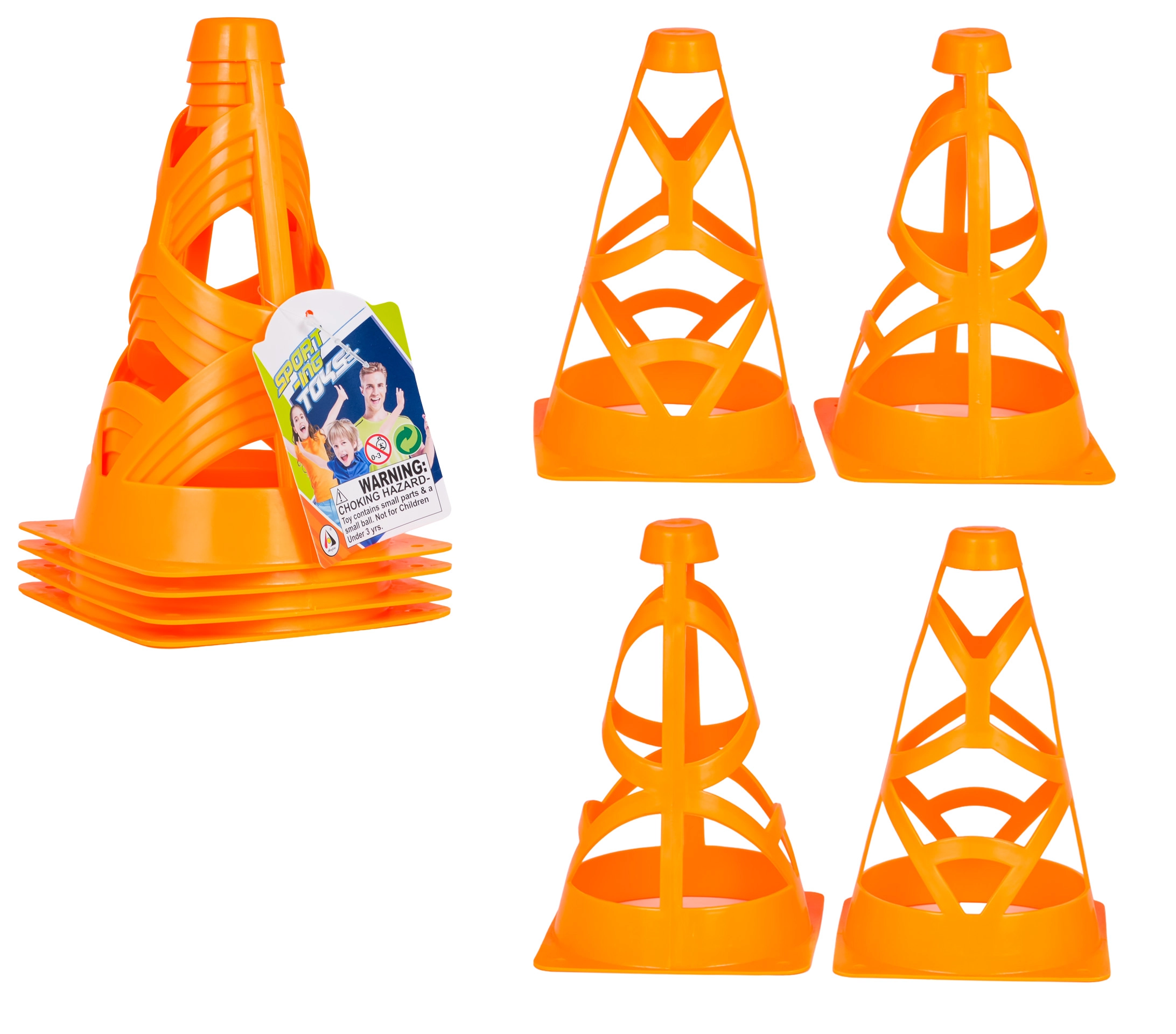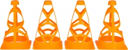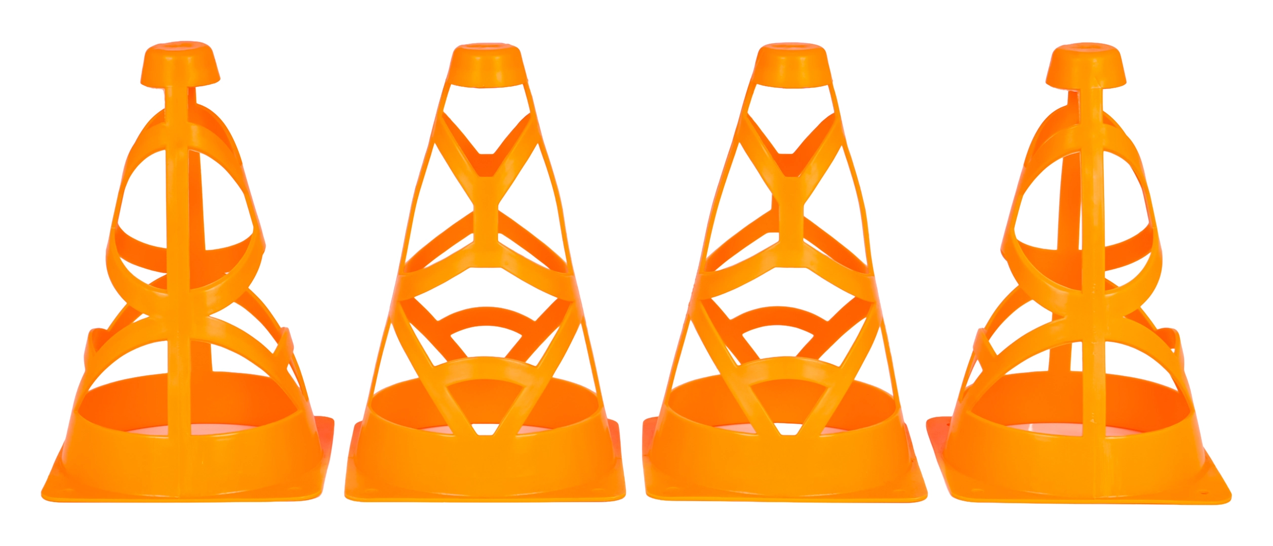 Sada štyroch oranžových kužeľov pre deti od 3 rokov a dospelých športovcov. Sú ľahké, stohovateľné a vďaka jasne oranžovej farbe skvele viditeľné. Otvorená konštrukcia s otvormi na kotvenie zabezpečuje stabilitu aj vo vetre. Vhodné na futbalové tréningy, agility cvičenia aj vyznačovanie zón na ihrisku či dvore.