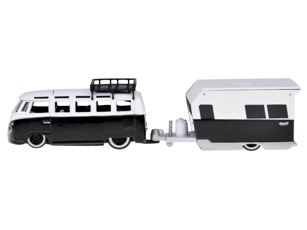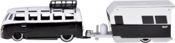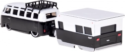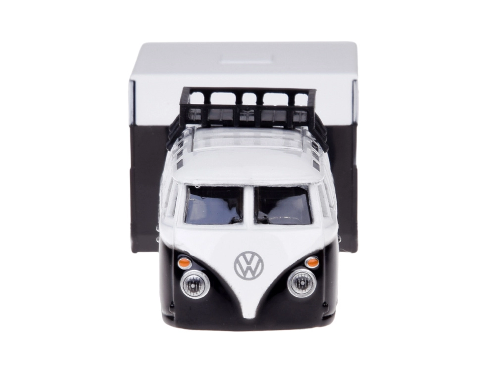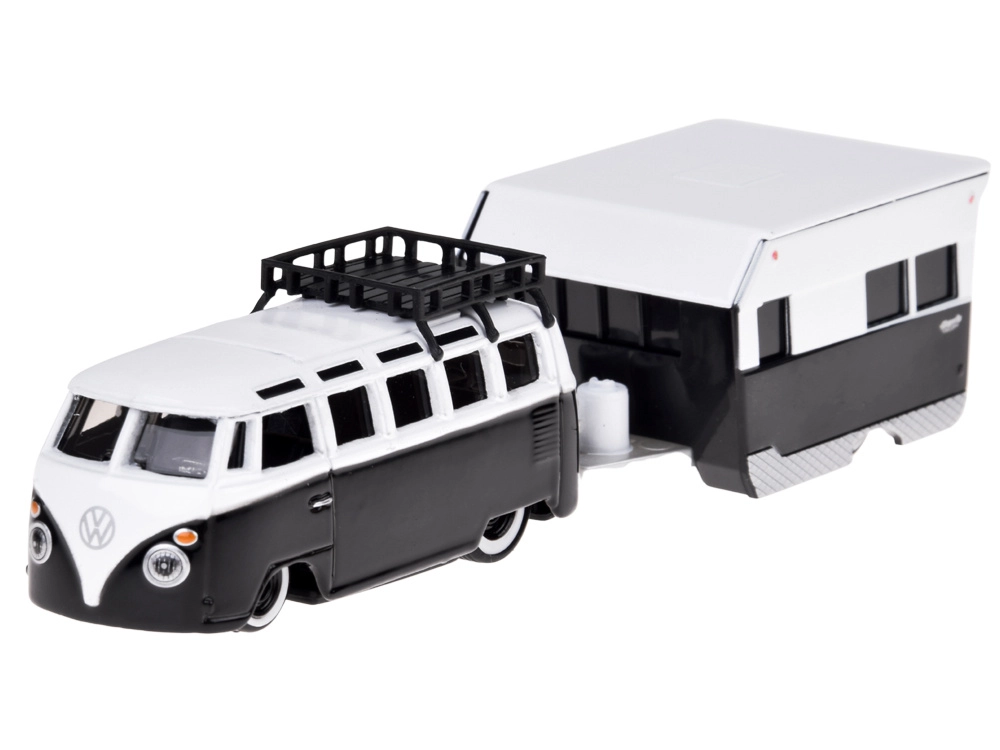 Sada spája ikonický mikrobus VOLKSWAGEN a detailne spracovanú kempingovú prívesnú súpravu. Ideálne do zbierky aj na imaginatívnu hru.