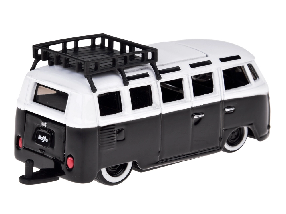 Kovová karoséria, realistické okná, kolesá aj strešný nosič. Precízne proporcie a decentná čierno‑biela farebnosť zvýrazňujú retro charakter.