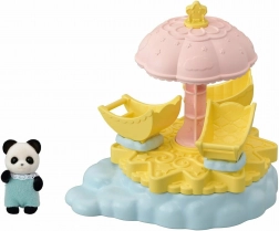 Súčasťou balenia je roztomilá figúrka malej pandy s pohyblivými končatinami, ktorú možno ľahko posadiť na sedadlá alebo postaviť do rôznych polôh. Kompaktné rozmery kolotoča (cca 15 × 14 × 12 cm) sa skvele hodia do každého detského pokojíka aj k ďalším setom Sylvanian Families.