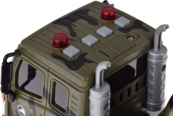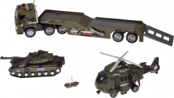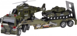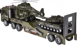 Tento detailne spracovaný vojenský transportný set umožní deťom plánovať prepravu techniky, nasadenie jednotiek aj záchranné operácie. Kamión s odpojiteľným návesom prepraví tank aj helikoptéru, zadná nájazdová rampa uľahčuje nakládku. Svetlá a zvuky na streche kabíny pridajú hre napätie a atmosféru.